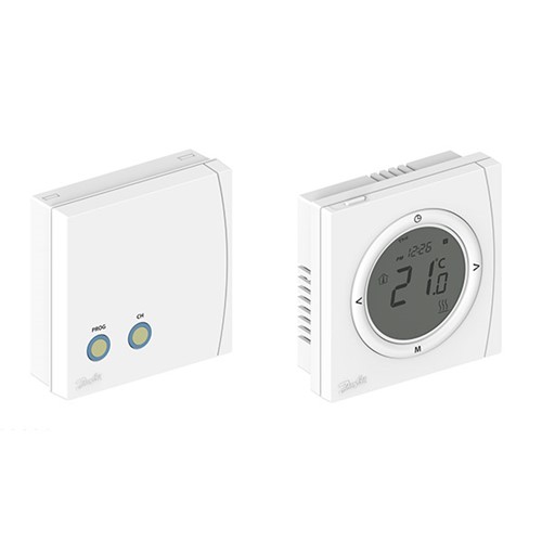 TP5001RF+RX1-S, Battery powered RF digital electronic programmable room thermostat and mains powered single channel RF receiver.